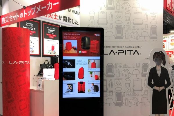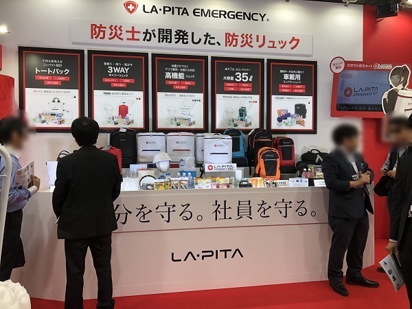 まずLA・PITAさんのブースを通りかかって最初に目に入ってきたのが、「防災リュック」のイメージとはまったく異なるバッグの数々。