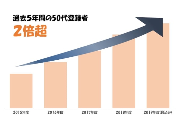弊社に登録している50代の求職者は過去5年間で2倍以上となっています。