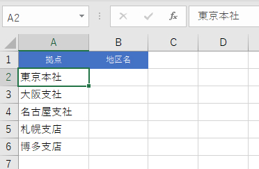 例えば図1のように、A2~A6セルには拠点名が入力された表があるとする。これらのセルのデータから「本社」などを除き、地区名だけを隣のB列に取り出したいとする。