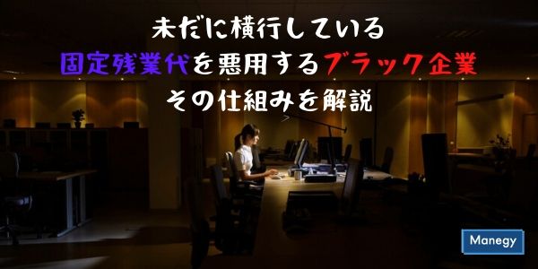 最近、ブラック企業でよく行われている固定残業代という賃金形態をご存じでしょうか。今や国を挙げて働き方改革に取り組み、労働環境の改善を目指している日本ですが、固定残業代を悪用して労働者に過酷な労働を強いるブラック企業が未だに横行しています。今回はこの固定残業代について注目し、そもそもどのような仕組みなのか、何が問題なのかについて詳しく解説しましょう。