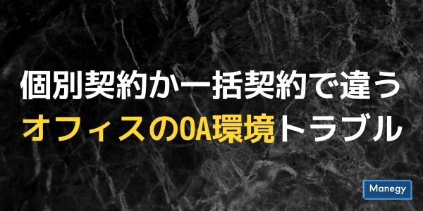オフィスにはPC端末もあれば複合機リースなど、さまざまなOA機器があるが、不具合や障害が発生すると、担当者は契約先や工事業者に連絡をする。しかし、これがバラバラに個別で契約していると、それぞれの契約先に連絡しなければならなくなる。原因が特定できない場合、各業者間をたらいまわしにされることもありうる。