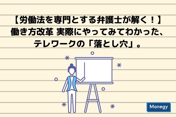 そのため、テレワークを導入してみたものの、実際に運用したらフィットしなかった、逆に生産性が落ちた、職務に専念できていないといった問題が表面化する事態はどうしても出てくるし、筆者自身、そのような相談を顧問企業からよく受ける。