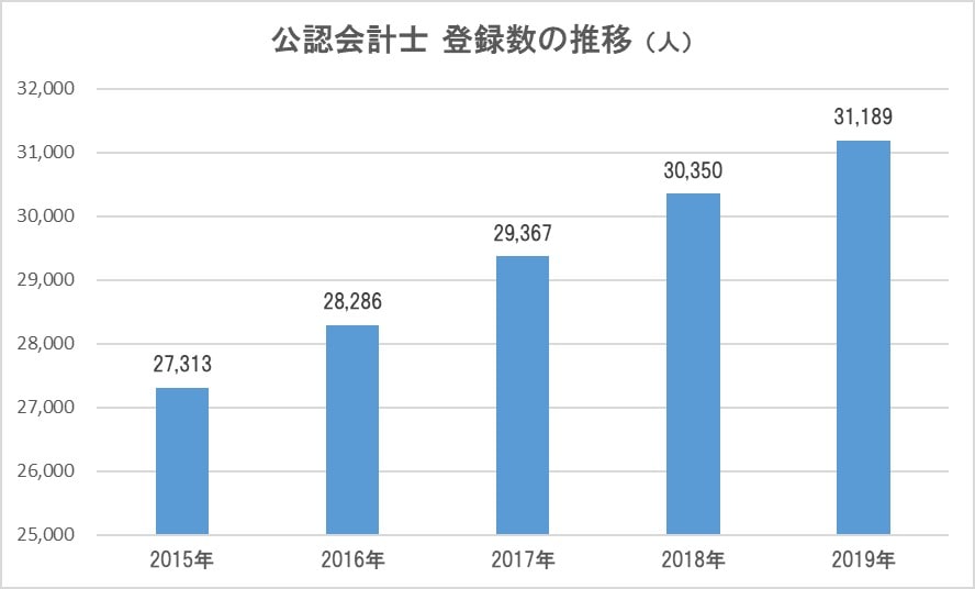 公認会計士・監査審査会の報告によれば、公認会計士の人数は下のグラフのように近年増加しています。