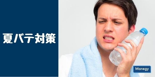 夏場の熱中症対策には、水分補給のための飲み物とエアコンの利用が欠かせないといえます。しかし、水分補給と称して冷たい飲み物を大量に飲み続ける、エアコンの設定温度を低くしすぎる、といった行為を繰り返すと、体調不良をもたらし、夏バテの原因ともなるため注意が必要です。