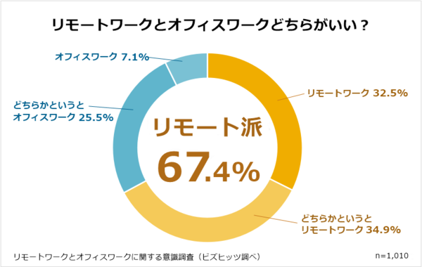 ●「オフィスワークよりリモートワークのほうがいい」と回答した人は全体の67.4%