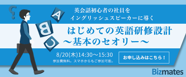 そんな人事の方にチェックしてもらいたいのが、英語研修を展開するビズメイツ株式会社が6月24日に開催するWebセミナー。
