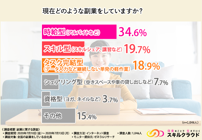注目は、2位の「スキル型(スキルシェア、講習など)」。近年はクラウドソーシングサービスなどが普及し、自身のスキルを使って稼ぎやすい環境が整っている。得意なことや興味があることで稼げれば、副業もやりがいを感じられるのでよい環境と言えるだろう。