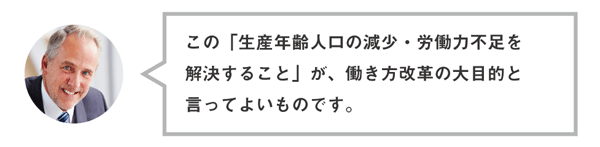 「このままでは、国全体の生産力低下・国力の低下は避けられない」として、内閣が本格的に「働き方改革」に乗り出したのです。