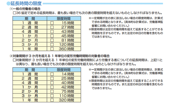 ※引用:厚生労働省「時間外労働の限度に関する基準」