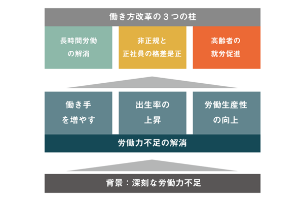 労働力人口の慢性的な減少を受け、2016年9月、内閣に「働き方改革実現推進室」が設置されて以来、労働環境改善のためのさまざまな取り組みが行われてきました。