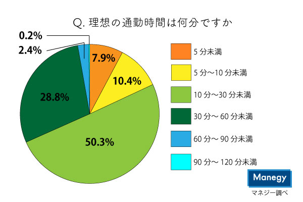 また、本アンケートでは理想の通勤時間は何分かについても尋ねてみた。結果は以下のとおりだ。