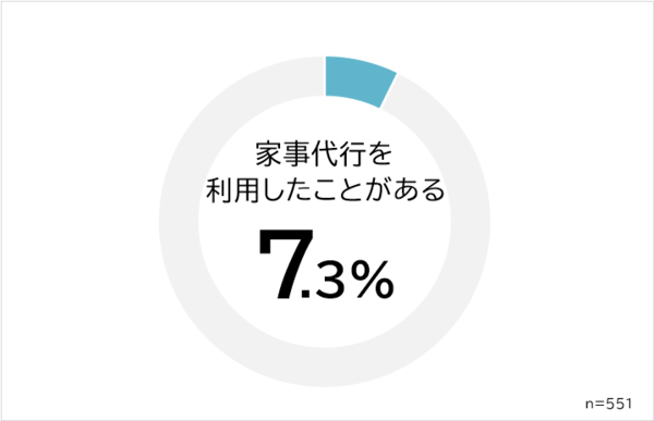 最後に、家事や掃除の代行サービスを利用したことがあるか尋ねたところ、「ある」と答えた人は551人中40人と、わずか7.3%だった。