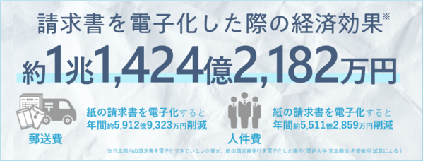 また、関西大学宮本教授の協力のもとに実施した経済試算によると、これまで請求書処理関連業務を手作業で行っていた企業が電子化をすることによる経済効果は推定約1兆1424億円にものぼるという。