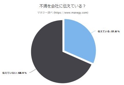 結果は、会社に伝えているのが約3割と、少数派であることが判明した。不満を感じていても、上司との関係悪化を恐れたり、「伝えてもムダ」という諦めの気持ちがあったりなど、簡単には訴えられない現実が浮き彫りとなった。