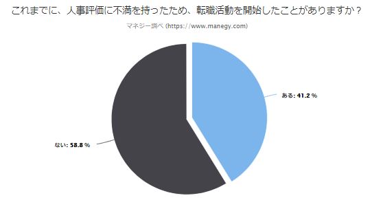 最後の質問は「これまでに、人事評価に不満を持ったため、転職活動を開始したことがありますか?」。実際に行動した人はどの程度いるのだろうか。