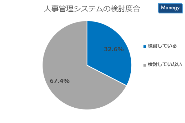 約3割の会社が、人事管理システムの導入を前向きに検討していることがわかった。システムのサービス向上や新製品や新機能の誕生に伴い、今後も導入する会社は増えていくと言えるだろう。