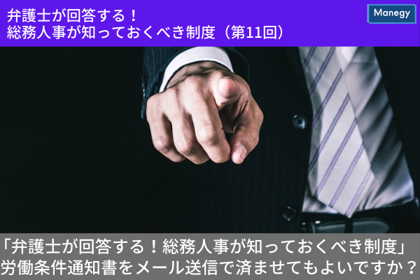 当社では、多数の契約社員、パート、アルバイトを雇用しており、入社時に労働条件通知書をその都度「書面」で発行する事務作業だけでも馬鹿になりません。これを「メール」で済ませることができれば省力化を図れますが、法律上そのような運用は可能ですか?