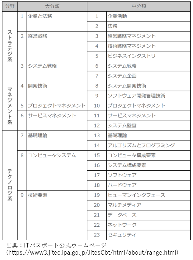 それでは、実際にITパスポート試験の出題範囲を見てみましょう。