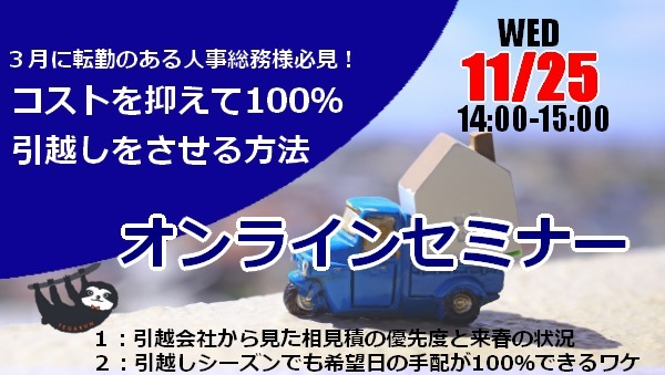 人事異動が多いのはやはり4月が一番多いようです。同じオフィス内での移動ならまだしも、県外の場合は引越しが必要となりますが、その時期はいわゆる引越しシーズン。値段はもちろんのことですが、そもそも引っ越し業者が見つからないリスクも存在します。そんな時期に100%引っ越しを実現できるためにはどうすれば良いのでしょうか?来年度の従業員の転勤に備えて、方法をチェックしてみませんか?