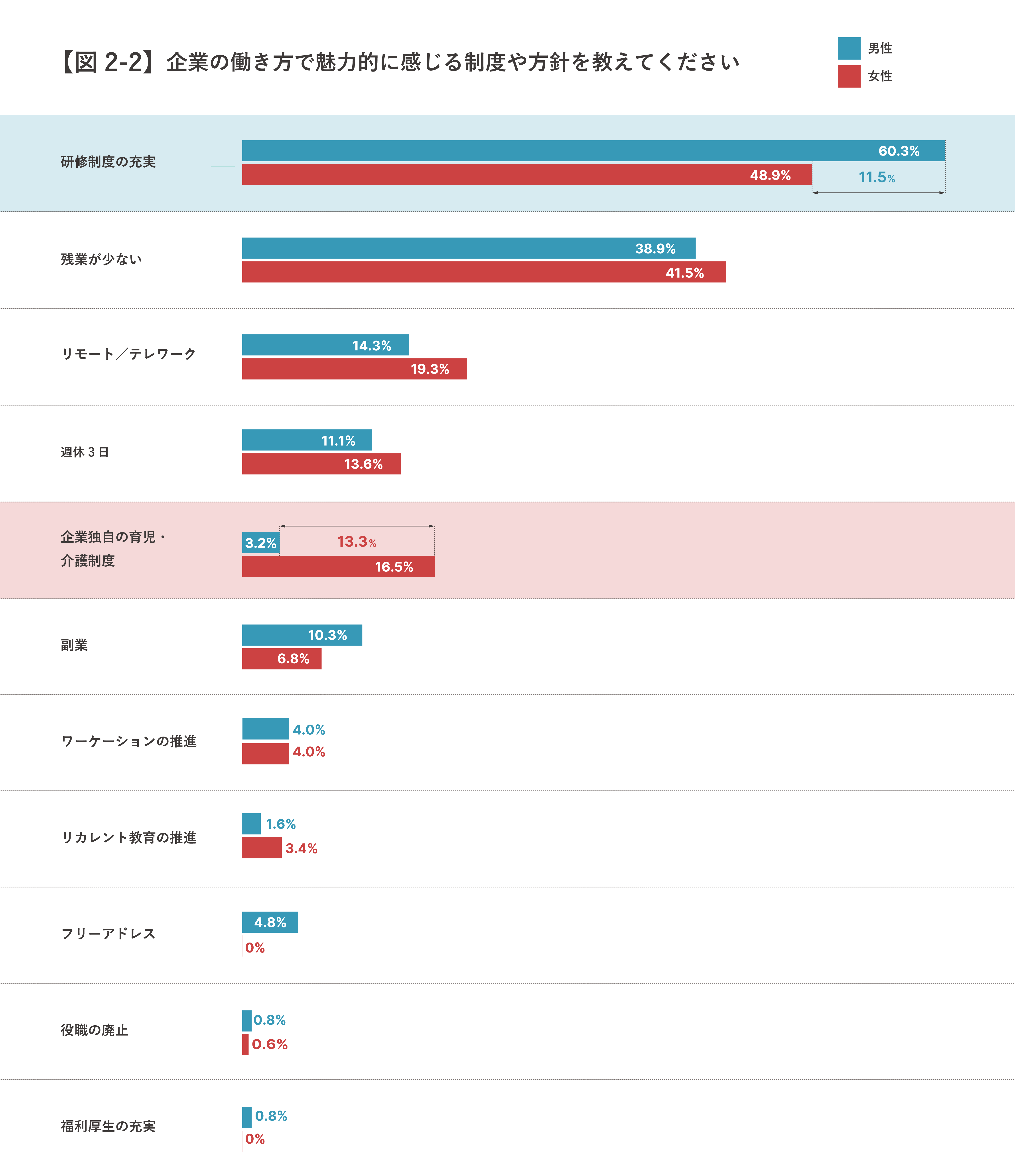 ・魅力的に感じる制度は「研修充実」がダントツトップ! 女性は「育児・介護制度」も重視