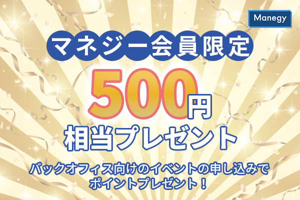 また、今回のオンラインセミナーではマネジー会員の方限定で、専用ページ経由でお申込みの上、視聴いただいた方に500円分相当のポイントをプレゼントするキャンペーンを実施いたします!マネジーポイントはAmazonギフト券や各種ポイントに交換が可能です!まだマネジーのポイントを貯めたことがない、利用したことがない方も、是非この機会に利用してみてくださいね。