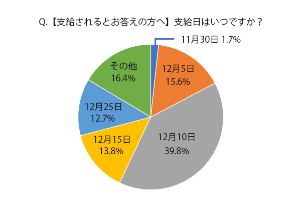 結果は、国家公務員のボーナス支給日である12月10日と同じ企業が最も多かった。