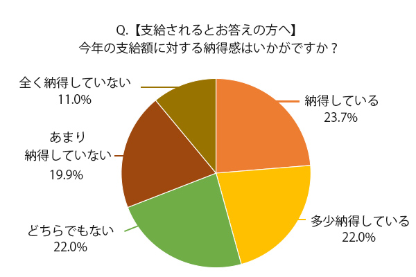 さらに問4でも、問1で「支給される」と答えた人を対象に「今年の支給額に対する納得感はいかがですか?」と聞いた。問3で厳しい結果が出ているが、人々はどう受け止めているのだろうか。