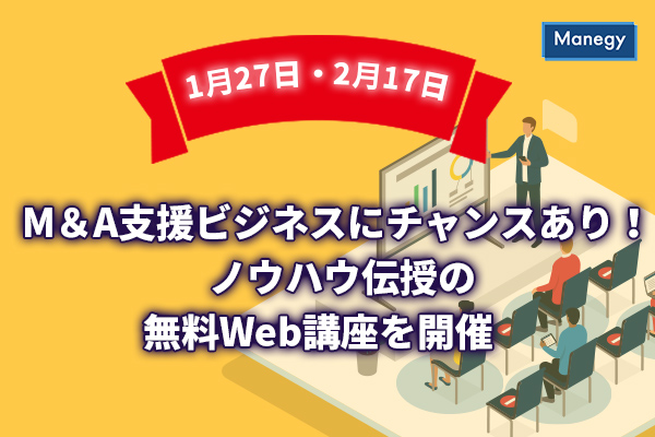 今後はM&A実務で活用できる補助金も開始されるため、専門家にとっては好機となるだろう。中小企業対象のM&A支援ビジネスのノウハウを、オンラインにて1日で完全マスターできる本講座。本来は有料の実践プログラムを、無料で実体験できる貴重な機会なので、ぜひ参加してみてはいかがだろうか。