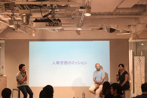 今回のイベントは登壇者によるトークセッションと懇親会の二部制となっており、第1部では「新しい働き方を支える人事労務」というタイトルの元、先進的な取り組みをされているゲストスピーカーの方をお招きし、「副業制度の導入と企業の向き合い方」「人事労務のミッション」という二つのテーマについてトークセッションを行いました。