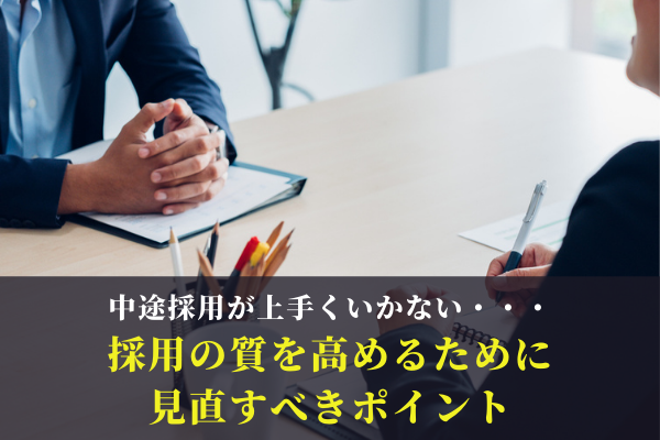 人手不足に悩む企業が増える中、求職者に対する魅力的な求人情報を作り込むことができなかったり、自社が望む人材を十分に集められなかったりして、思い通りに中途採用を進められない企業が増えてきています。 新卒採用で必要な人材が1人も確保できず、やむなく中途採用を検討するも、結果が出ていない企業もあります。 この記事では、そんな「中途採用がうまくいっていない」企業向けに、現代においてなぜ中途採用が難しくなってきているのかを解説した上で、中途採用の質を高めるための課題・見直すべきポイントについてご紹介します。
