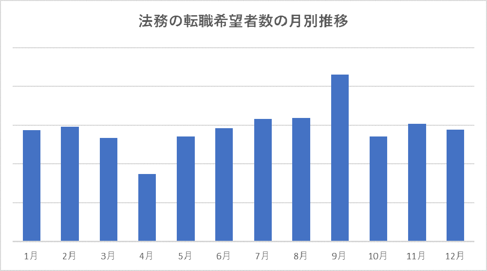 結果として、2021年の法務の転職希望者は、6月と9月に多くなると予想しています。