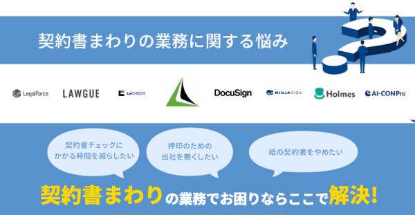 この契約書まわりの業務に関する悩みを解決し、手間・コストを削減可能なリーガルテックサービスをまとめてご紹介いたします。
