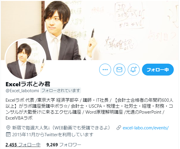 Excelラボ 代表 /東京大学 経済学部卒 / 講師・IT社長 / 【会計士合格者の年間約600人以上】がラボ講座受講中ボラ☆/ 会計士・USCPA・税理士・社労士・経理・財務・コンサルが大勢受けに来るエクセル講座 / Word原理解明講座 /光速のPowerPoint / ExcelVBAラボ