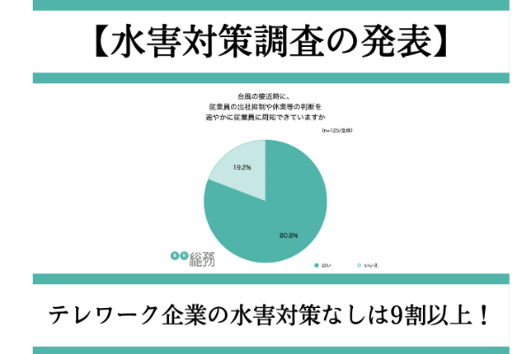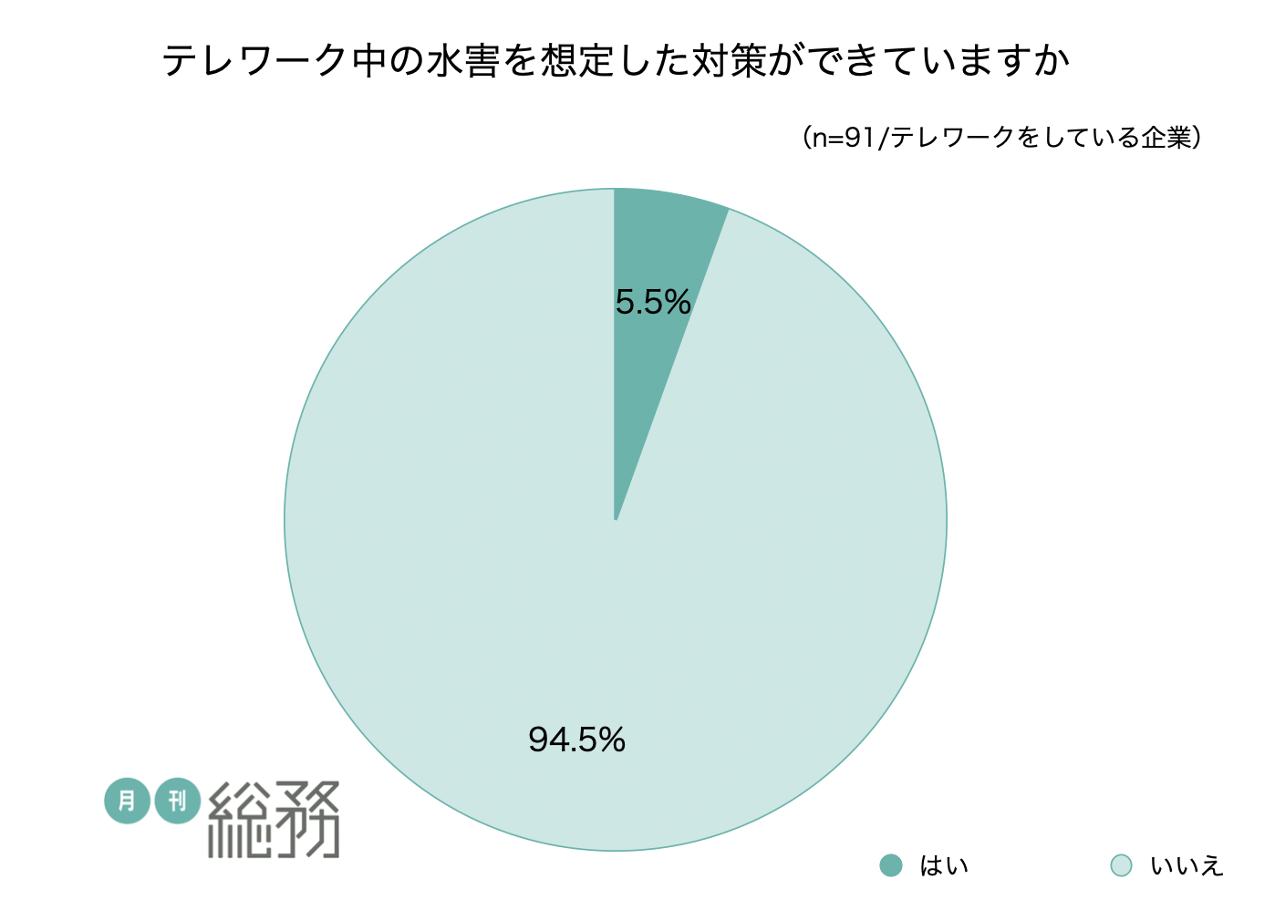 テレワークが定着しつつある今、ほとんどの企業がテレワーク中の水害対策をとっていないことは大きな問題であり、早急に取り組むべき課題と言えるだろう。