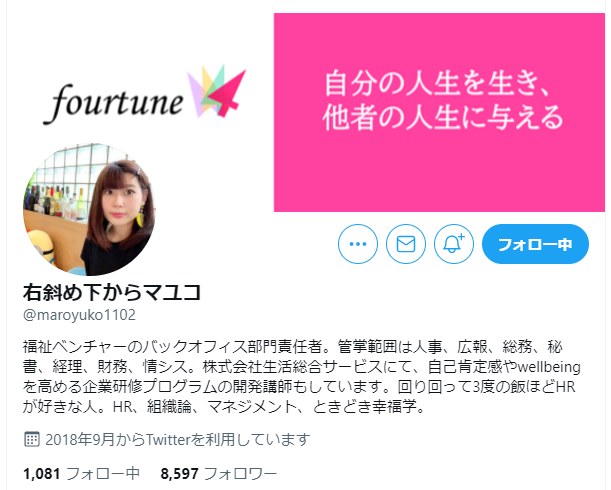 福祉ベンチャーのバックオフィス部門責任者。管掌範囲は人事、広報、総務、秘書、経理、財務、情シス。株式会社生活総合サービスにて、自己肯定感やwellbeingを高める企業研修プログラムの開発講師もしています。回り回って3度の飯ほどHRが好きな人。HR、組織論、マネジメント、ときどき幸福学。