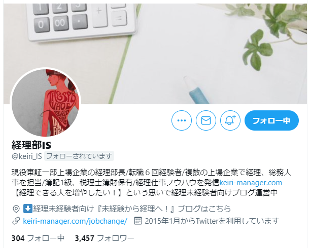現役東証一部上場企業の経理部長/転職6回経験者/複数の上場企業で経理、総務人事を担当/簿記1級、税理士簿財保有/経理仕事ノウハウを発信http://keiri-manager.com 【経理できる人を増やしたい!】という思いで経理未経験者向けブログ運営中