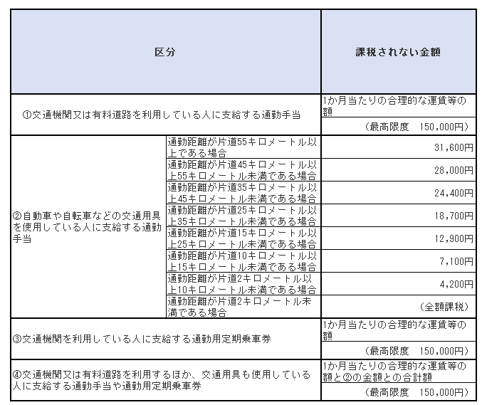 ちなみに通勤手当の非課税限度額は税制改正によって平成28年1月1日に現行の15万円に引き上げられ、それ以前は10万円でした。今までは課税対象だった人も、この改正で非課税対象になった可能性もあります。