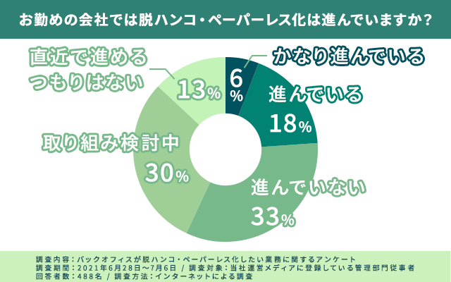 3問目の質問は「お勤めの会社では脱ハンコ・ペーパーレス化は進んでいますか?」。