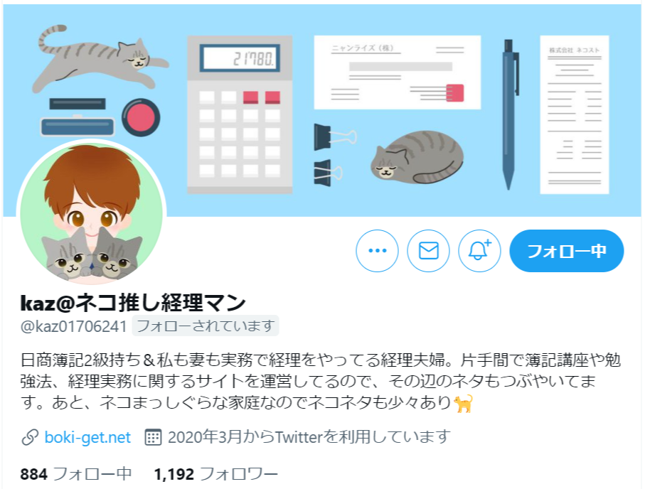 日商簿記2級持ち&私も妻も実務で経理をやってる経理夫婦。片手間で簿記講座や勉強法、経理実務に関するサイトを運営してるので、その辺のネタもつぶやいてます。あと、ネコまっしぐらな家庭なのでネコネタも少々あり?
