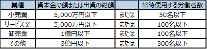 ただし、以下の基準に該当する中小事業主については、②のうち時間外労働の上限規制の強化は2020年4月1日、割増賃金率の猶予措置の廃止は2023年4月1日、③のうちパートタイム労働法及び労働契約法の改正は2021年4月1日までそれぞれその適用が猶予される。