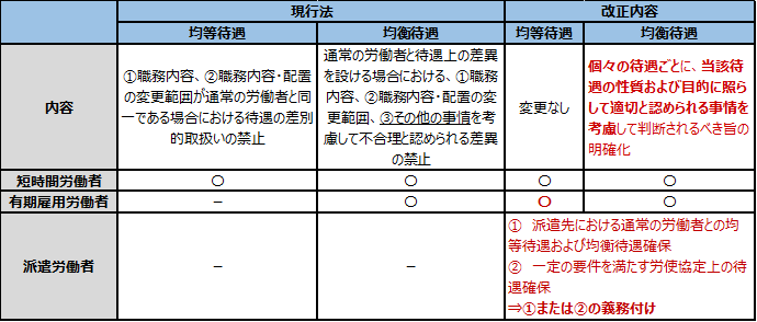 現行のパートタイム労働法および労働契約法においても均等待遇・均衡待遇の確保に関する制度が定められていたが、働き方改革関連法では、それぞれ以下のとおり変更が行われた。