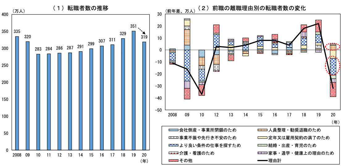 (参照元:厚生労働省|令和3年版 労働経済の分析 −新型コロナウイルス感染症が雇用・労働に及ぼした影響− )