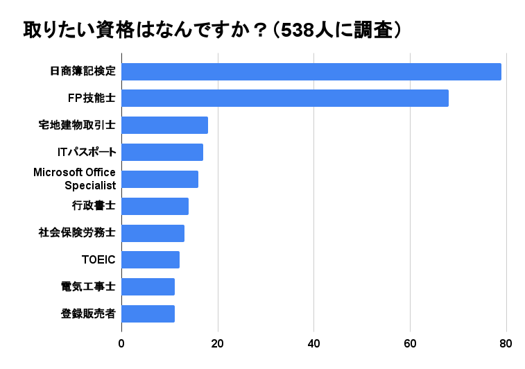 結果は「日商簿記検定」と「FP技能士」と回答した人が圧倒的に多く、3位以下の他資格に大きな差をつけた。