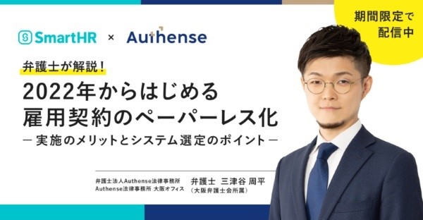 本セミナーでは、現役の弁護士が「雇用契約のペーパーレス化」をテーマに講演を行ない、関連する法律の解釈や、労働条件通知書と労働契約書の違い、そしてこれらをペーパーレス化することのメリットなどを詳しく解説いたします。