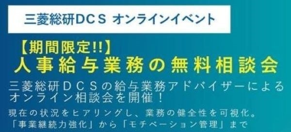 ご好評につき、受付期間を延長して第三弾開催決定!!三菱総研DCSの給与業務アドバイザーによるオンライン業務相談会を開催いたします!
