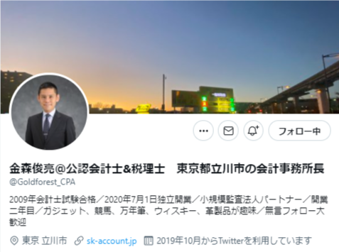 2009年会計士試験合格/2020年7月1日独立開業/小規模監査法人パートナー/開業ニ年目/ガジェット、競馬、万年筆、ウィスキー、革製品が趣味/無言フォロー大歓迎