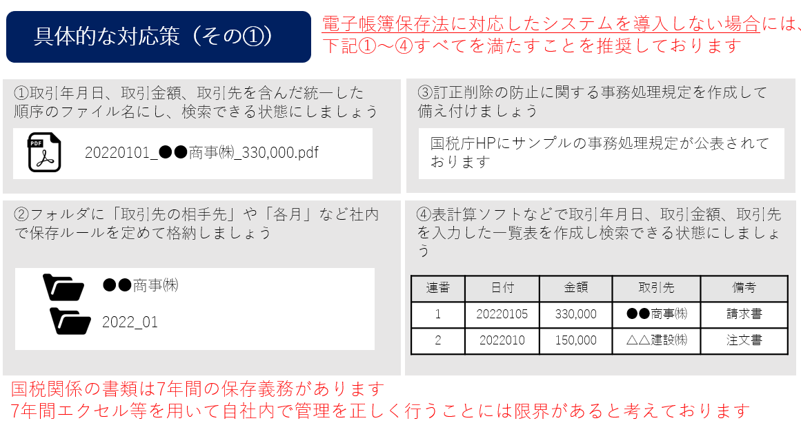 ・2年の猶予期間中に書類電子化の推進及び業務効率化を行い、経理DX化を促進しましょう。