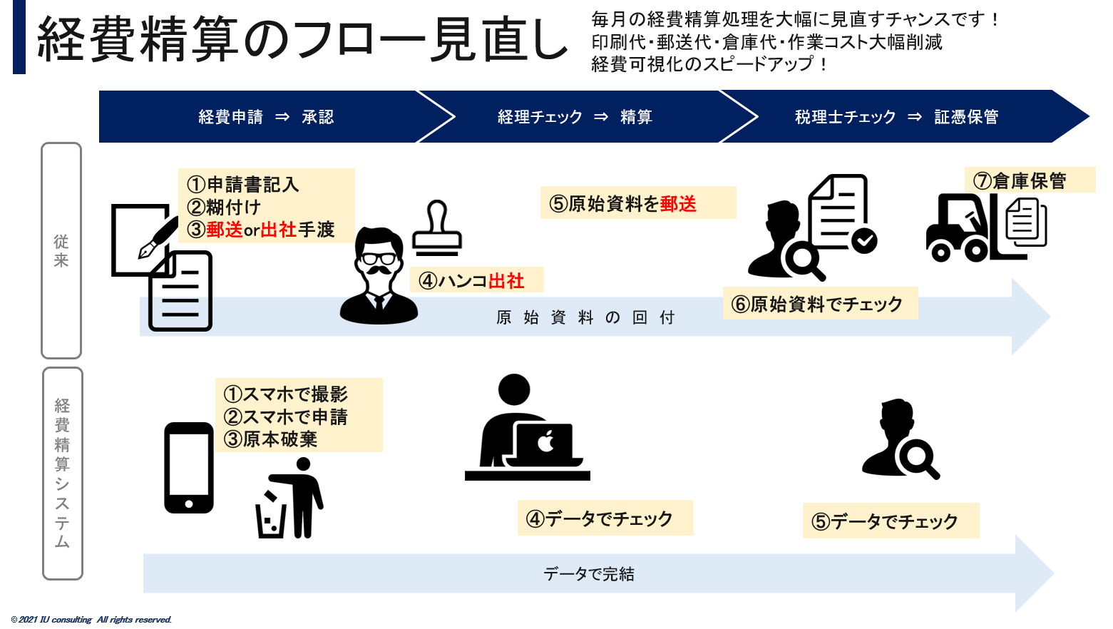 印刷代・郵送代・倉庫代が削減される上に作業コストも大幅に軽減され、内部統制の強化も図れます。