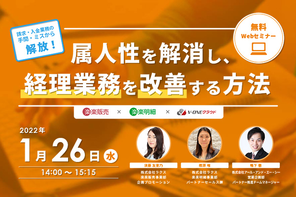複雑化する請求業務の手間・ミスのリスク・属人化をすべて解決するべく、販売管理システム「楽楽販売」、電子請求書発行システム「楽楽明細」、入金消込システム「V-ONEクラウド」と連携ソリューションをご紹介させていただきます。