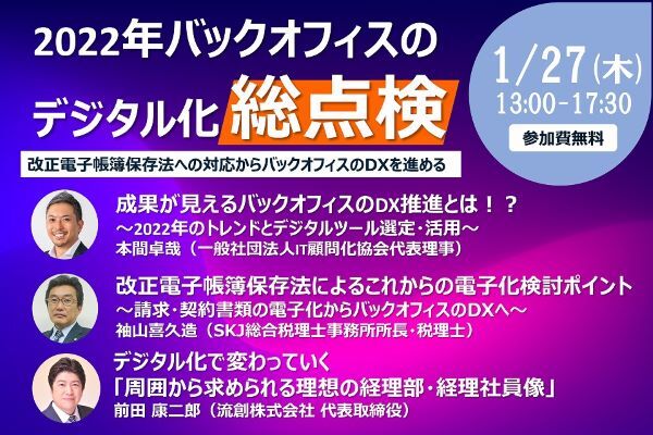 本日は、現在申込受付中の1月後半に開催される管理部門向けセミナーをまとめてご紹介します。すべて無料でご参加頂けますので、ぜひ詳細をチェックのうえ、日々の業務に関する情報収集や自身のスキルアップにご活用ください。